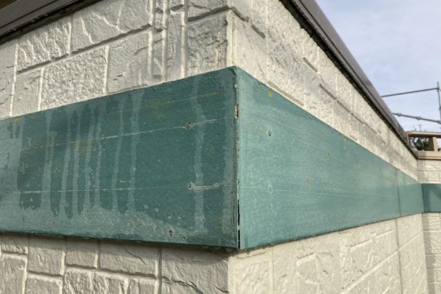 約8年前に外壁塗装したこちらのお家。 外壁の塗膜は残っていますが 幕板の塗装やコーキングが剥